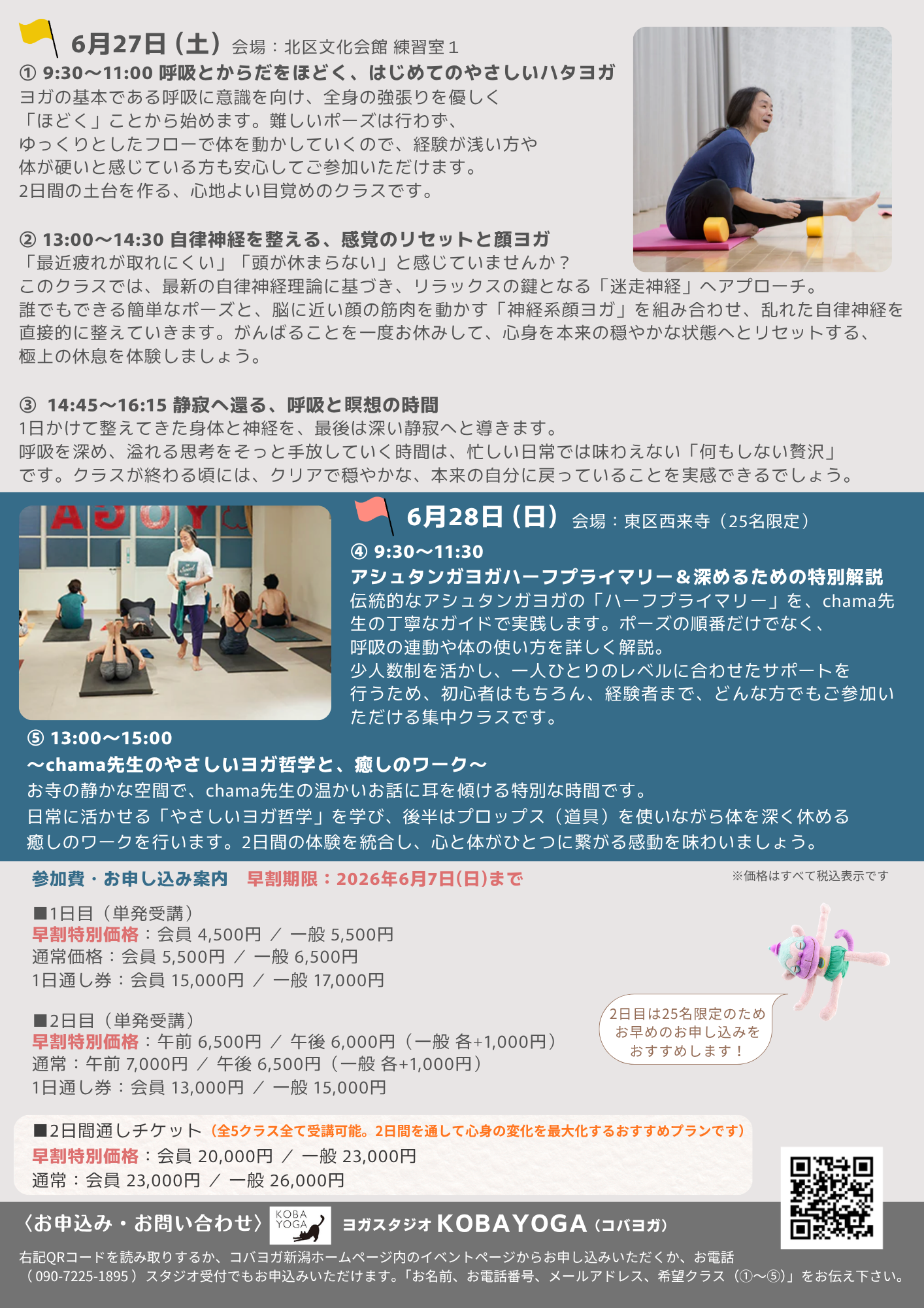 早割特別価格:午前 6,500円 / 午後 6,000円(一般 各+1,000円)